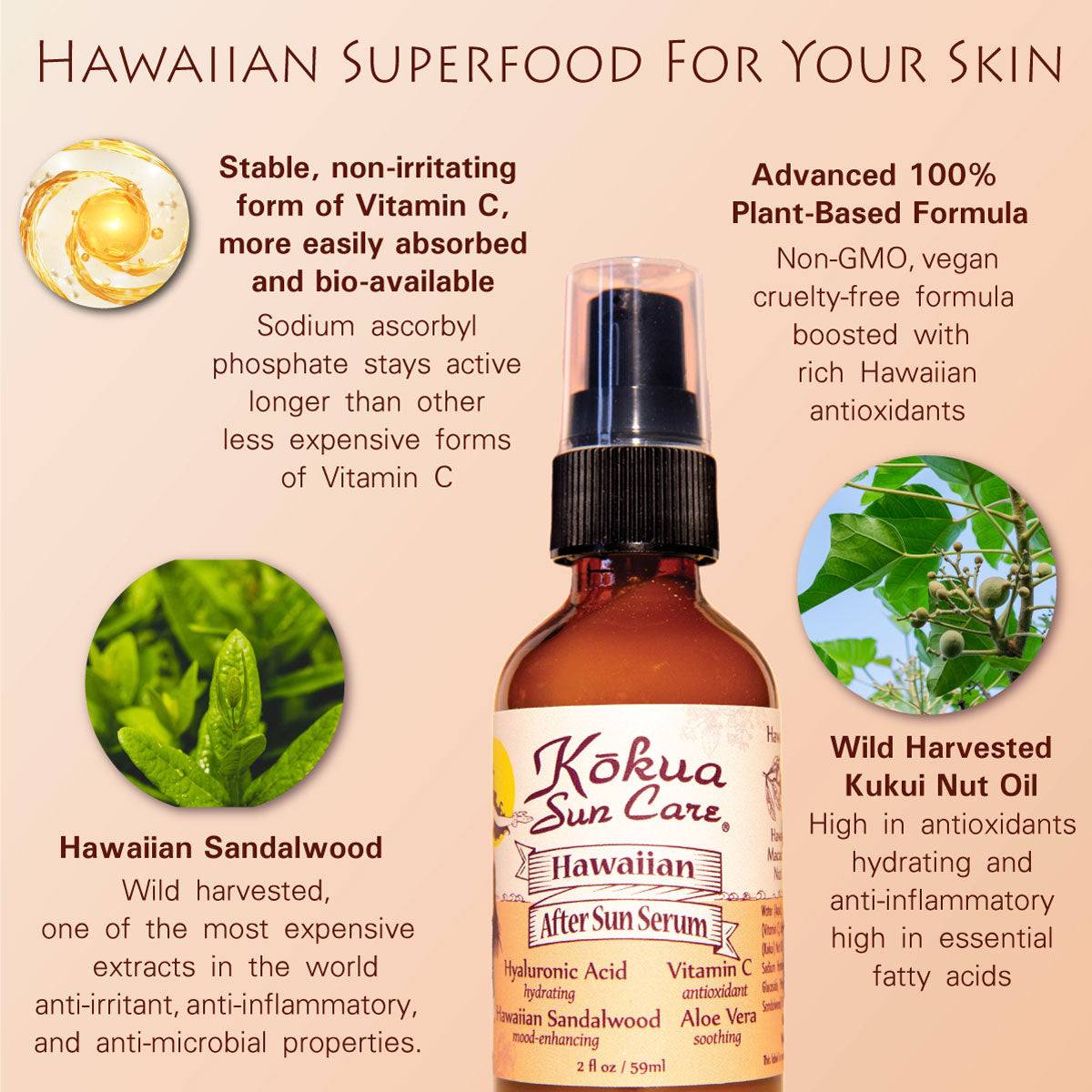 Water, Aloe Barbadensis Leaf Juice, Caprylyl Caprylate/Caprate(Coconut Oil Derived), Hawaiian Macadamia Ternifolia Seed Oil*, Hawaiian Aleurites Moluccana (Kukui) Seed Oil*, Polyglyceryl-2 Oleate (Olive Oil Derived), Polyhydroxystearic Acid (Vegetable Derived), Glycerin, Cocos Nucifera (Coconut) Oil, Cetyl Dimethicone, Magnesium Sulfate, Hydrogenated Methyl Abietate, Galactoarabinan, Propanediol, Polyglyceryl-2 Stearate, Hawaiian Morinda Citrifolia (Noni) Fruit Juice*, Arthrospira Platensis (Hawaiian Spirulina)*, Oryza Sativa (Rice) Bran Extract, Rosmarinus Officinalis (Rosemary) Leaf Extract, Heliantus Annuus (Sunflower) Seed Extract, Caprylic/Capric Triglyceride, Prunus Armeniaca (Apricot) Fruit Extract, Vanilla Planifolia Fruit Extract, Cucumis Melo Cantalupensis (Cantaloupe) Fruit Extract, Vaccinium Macrocarpon (Cranberry) Fruit Extract, Musa Sapientum (Banana) Fruit Extract, Santalum Album (Sandalwood) Extract, Coffea Arabica (Coffee) Leaf/Seed Extract, Pyrus Malus (Apple) Fruit Extract, Cocos Nucifera (Coconut) Fruit Extract, Heliantus Annuus (Sunflower) Seed Oil, Tocopherol, Hawaiian Plumeria Alba Flower Extract*, Kaolin, Hydrogenated Vegetable Oil, 1,2-Hexanediol Caprylhydroxamic Acid  *Hawaii Grown Ingredients